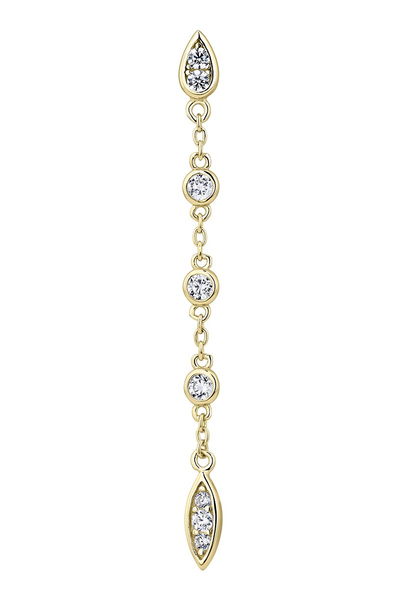 Boucle d'oreille pendante en argent plaqué or jaune sertie de zirconiums.