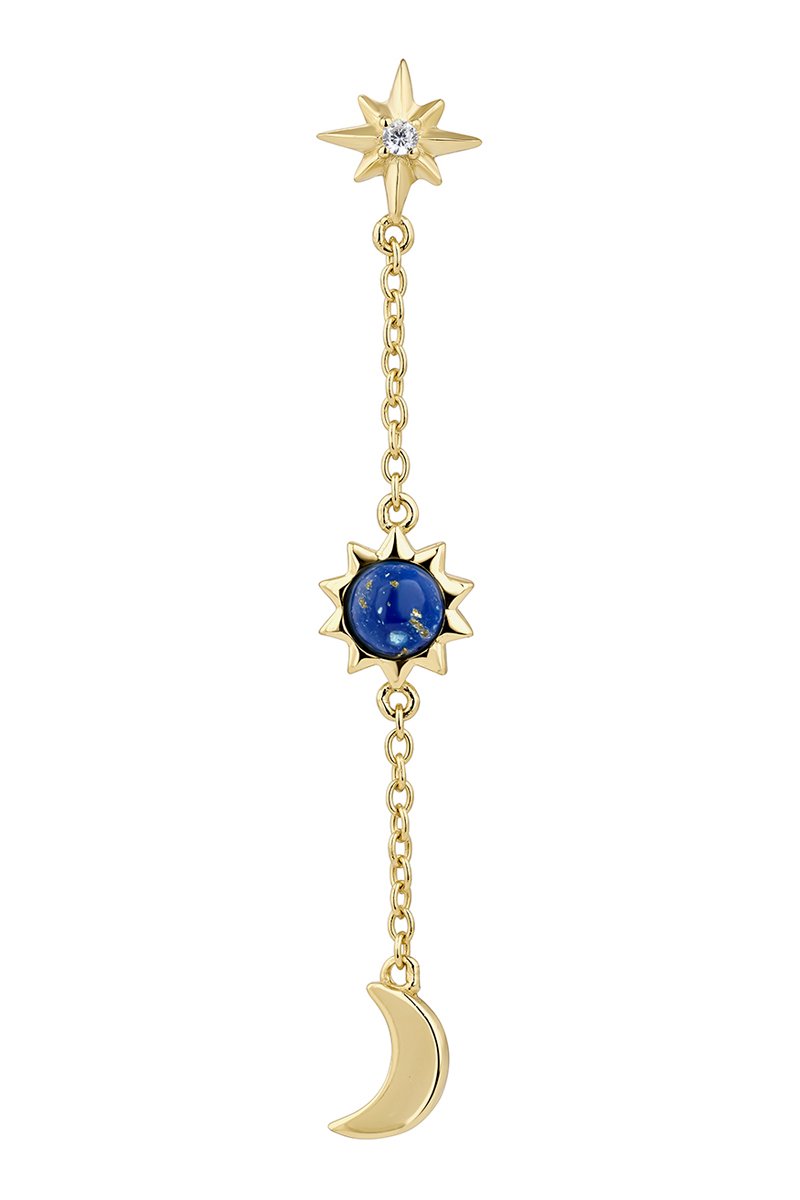 Boucle d'oreille Cosmic Galaxy - Argent plaqué or jaune et lapis-lazuli