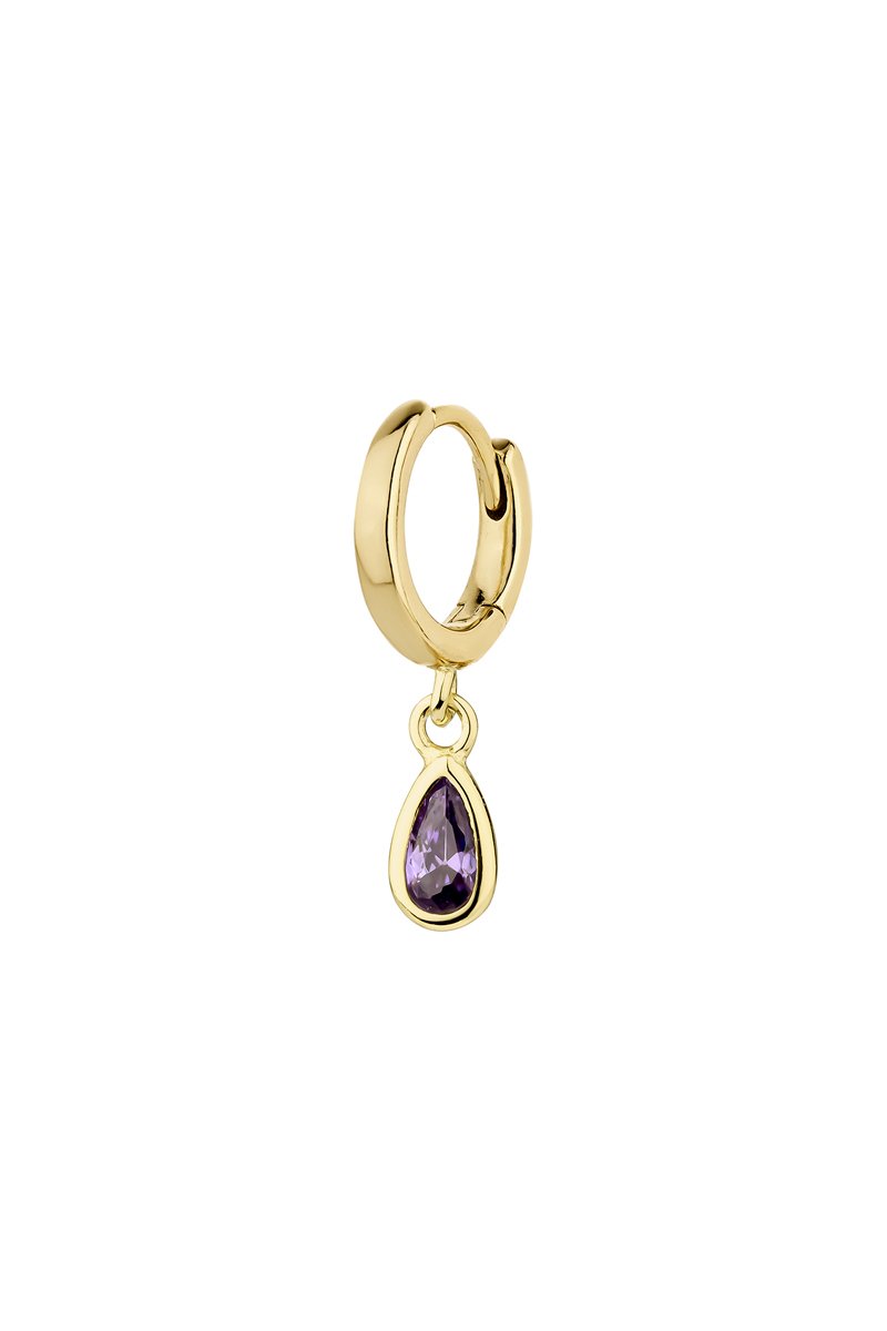 Boucle d'oreille en argent plaqué or jaune sertie d'une améthyste.