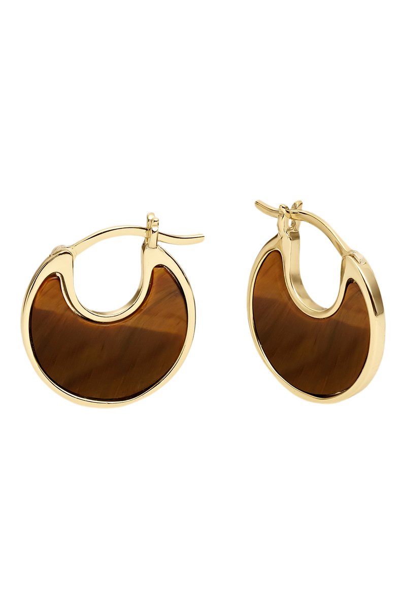 Créoles en argent plaqué or jaune serties d'un œil-de-tigre.