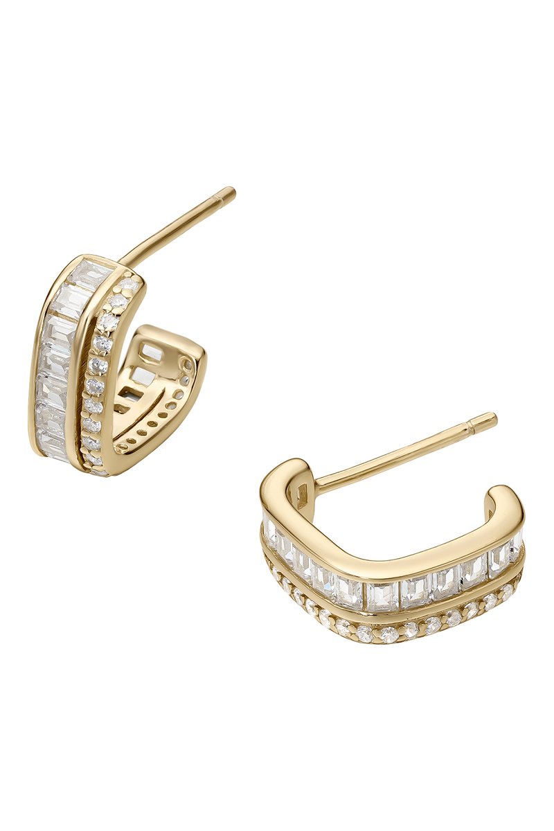 Boucles d’oreilles en argent plaqué or jaune serties de zircones cubiques.