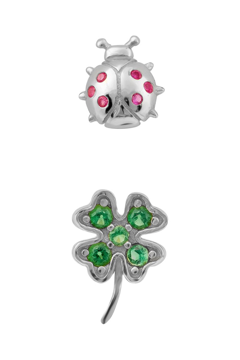 Puces asymétriques en argent serties de cristaux.
