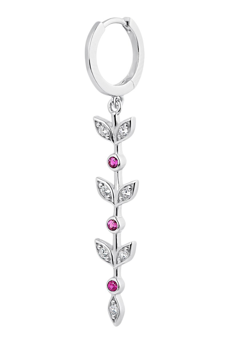 Boucle d'oreille pendante en argent sertie de zircons.