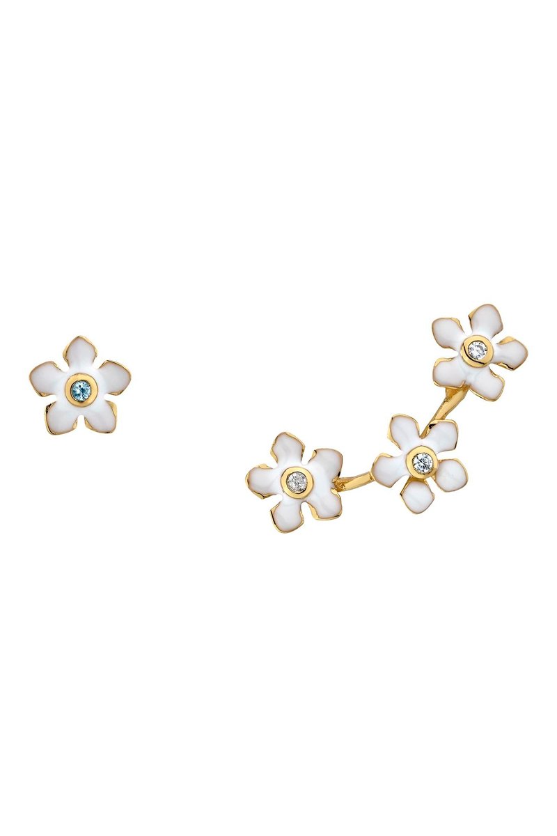 Puces asymétriques en argent plaqué or jaune serties de zircons.