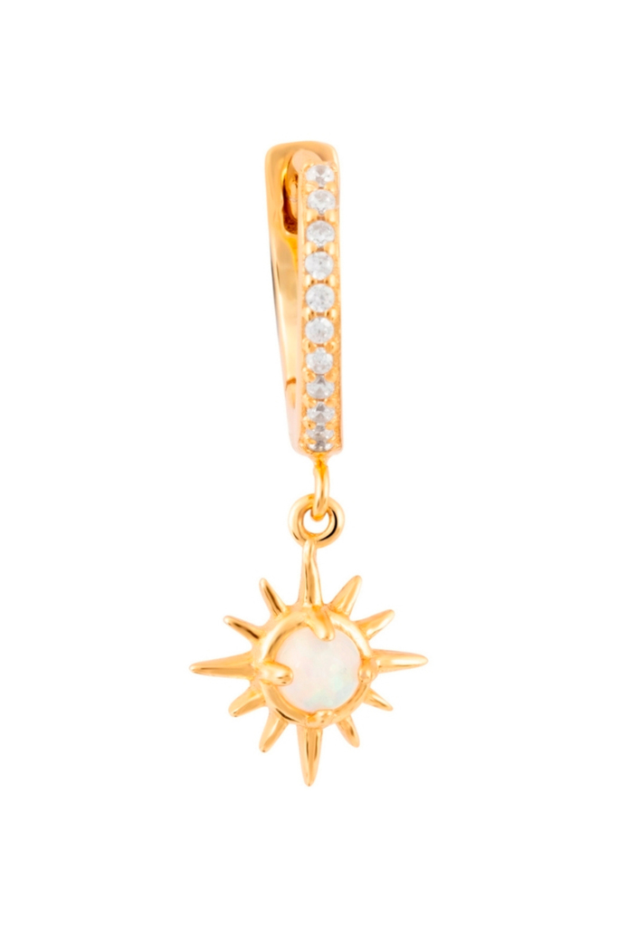 Créole en argent plaqué or jaune sertie d'une opale et de zirconiums.
