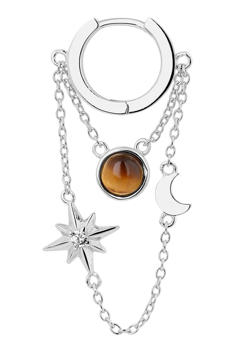 Boucle d'oreille Nova - Argent, zircons et œil-de-tigre