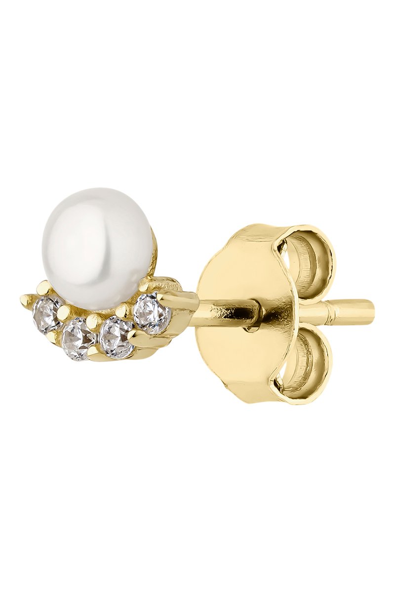 Puce en argent plaqué or jaune sertie de 4 zircons et d'une perle d'imitation.