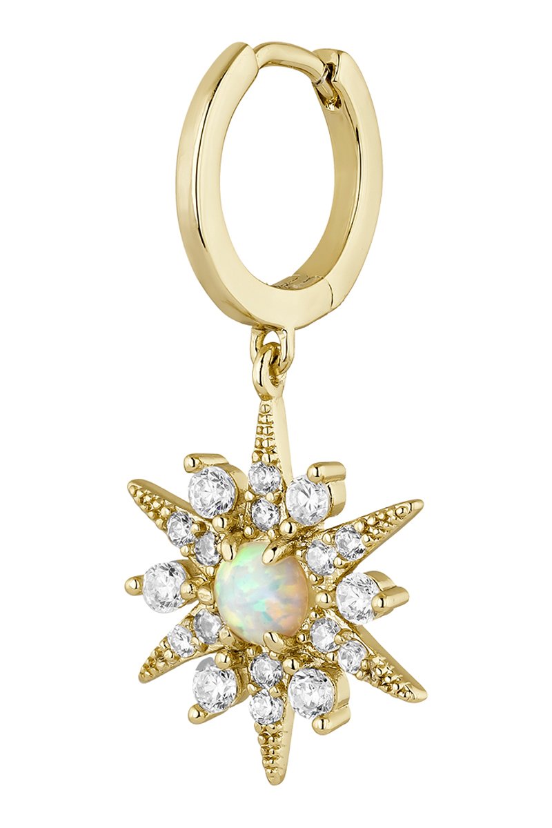 Créole en argent plaqué or jaune sertie d'une opale et de zirconiums.