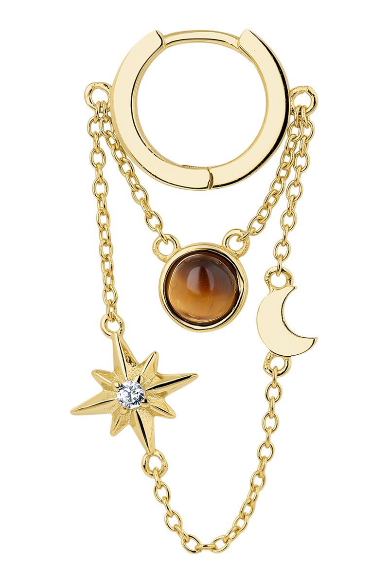 Boucle d'oreille Nova - Argent plaqué or jaune, zircons et œil-de-tigre