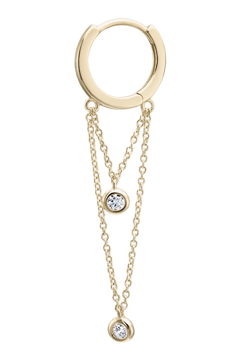 Piercing en argent plaqué or jaune serti de 2 zircones cubiques.