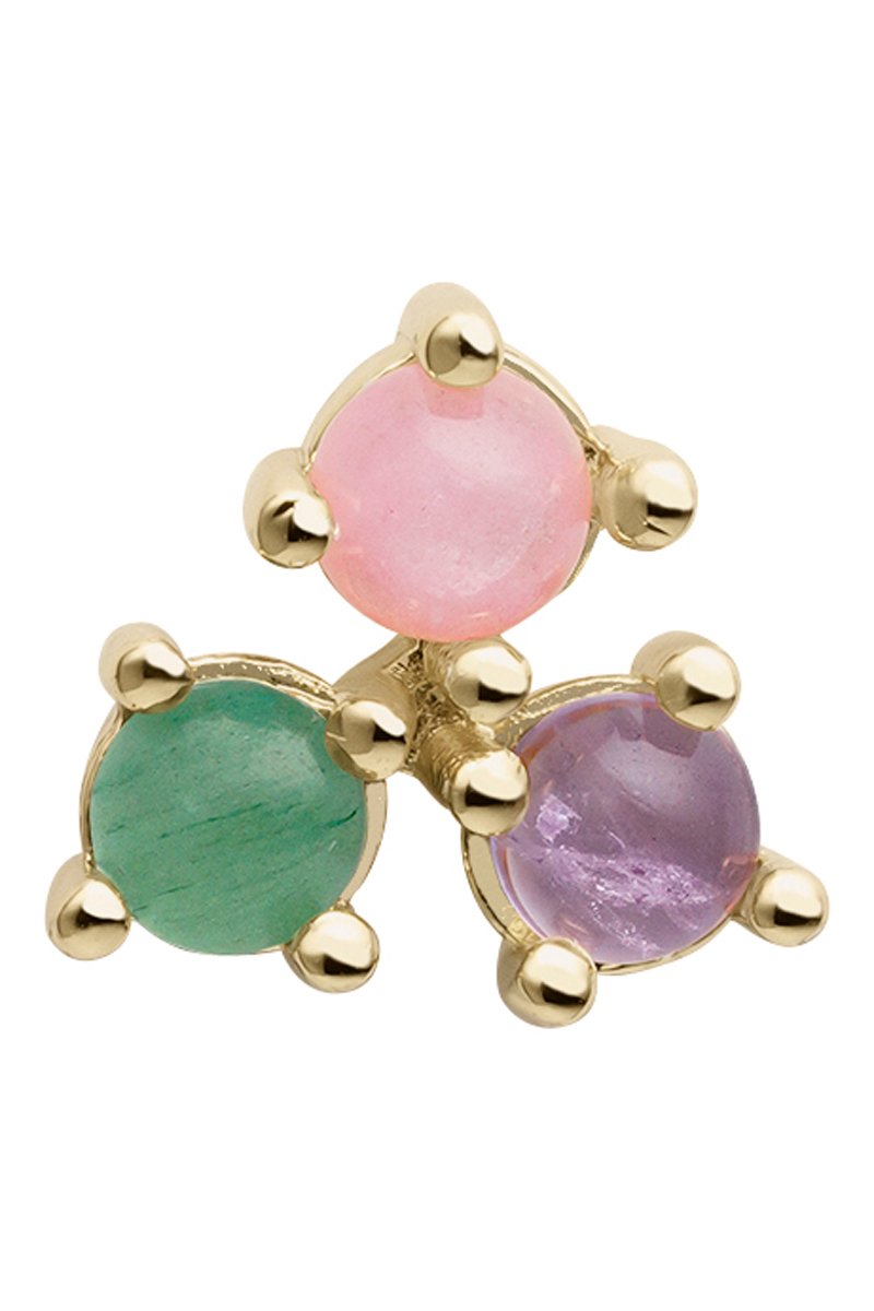 Puce en argent plaqué or jaune sertie d'une aventurine, d'une améthyste et d'un quartz.