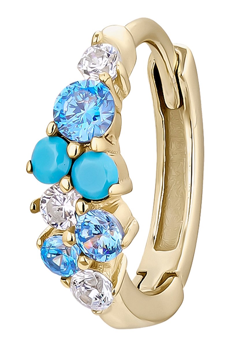 Piercing en argent plaqué or jaune serti de zirconiums et de turquoises.