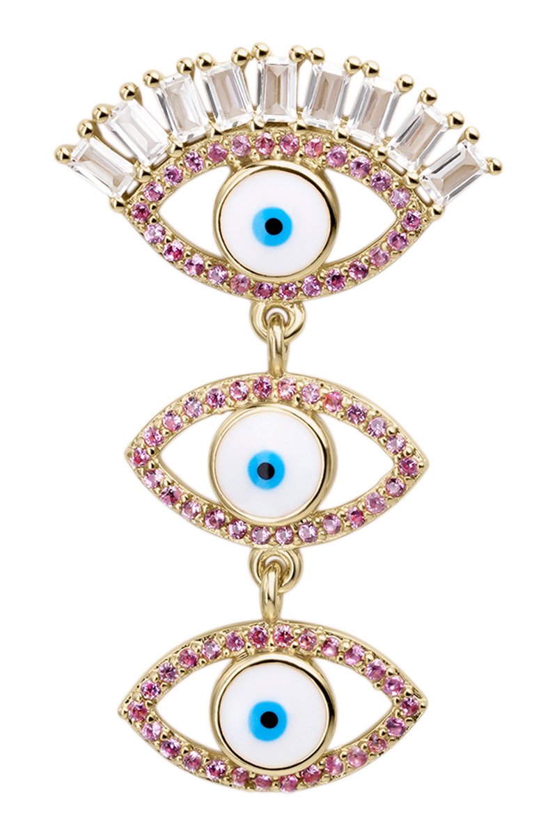 Boucle d'oreille pendante en argent plaqué or jaune sertie d'émail et de zirconiums.