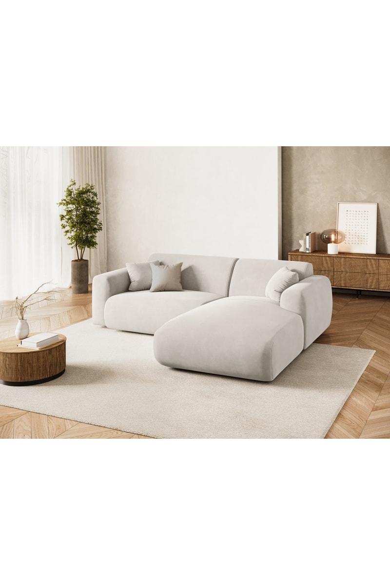 Canapé d'angle droit Nolio - Beige clair - 4 places - En tissu velours