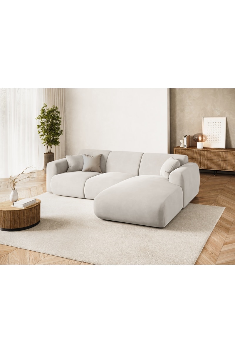 Canapé d'angle droit Nolio - Beige - 4 places - En tissu velours