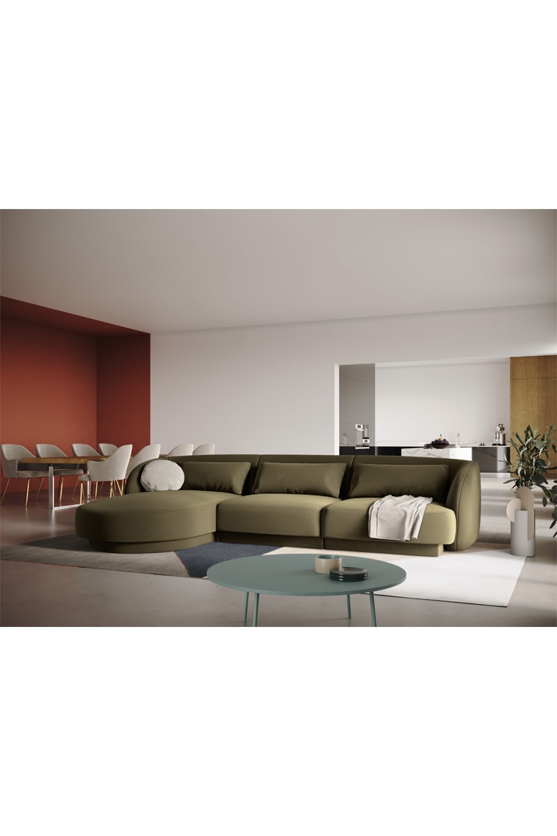 Canapé d'angle gauche Tulum - Kaki - 4 places - En tissu velours