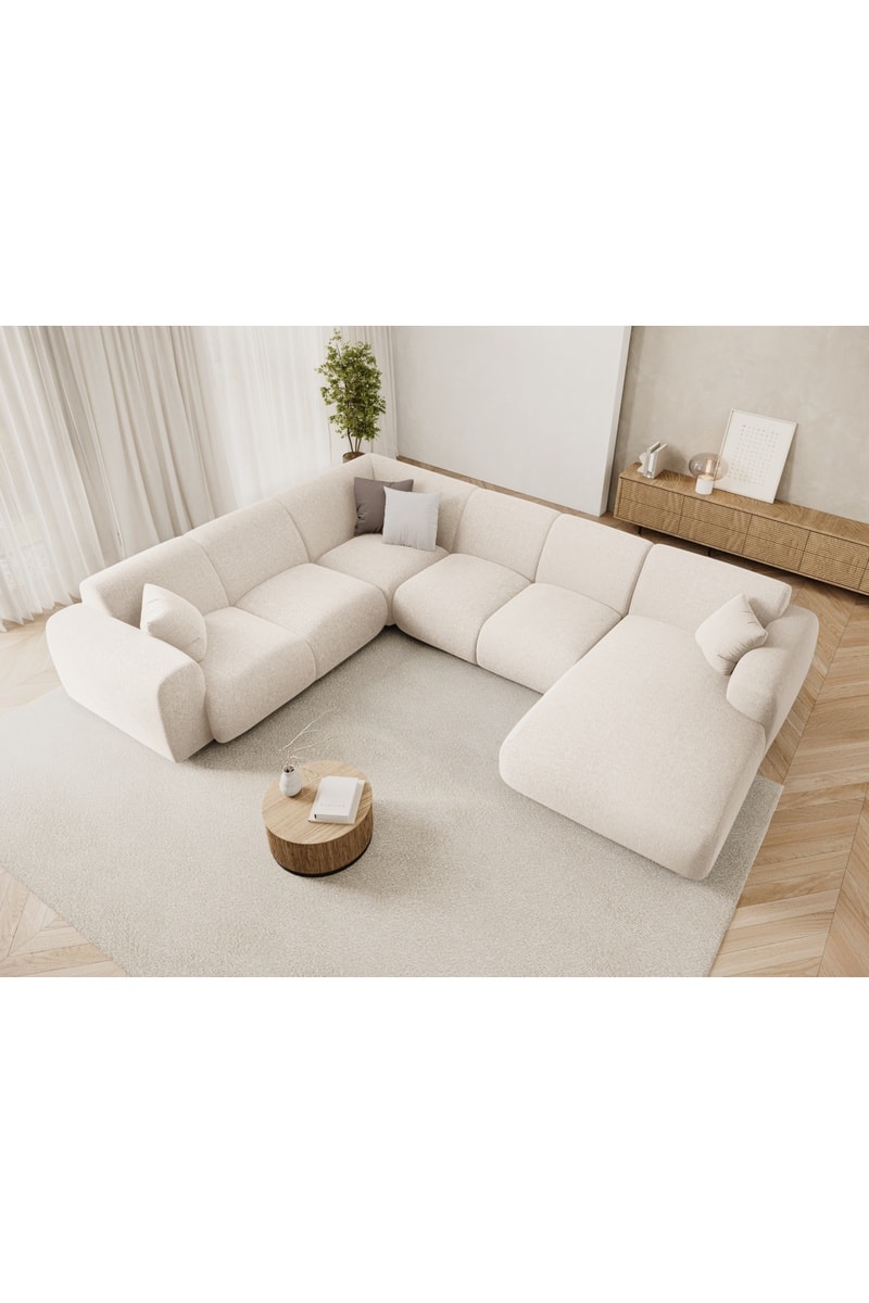 Canapé d'angle panoramique gauche Nolio - Beige - 6 places - En tissu chenille