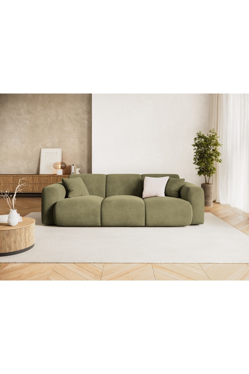Canapé Nolio - Vert olive - 3 places - En tissu velours