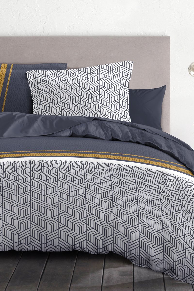 Parure de couette en coton 57 fils/cm² Tilt - Bleu marine et blanc