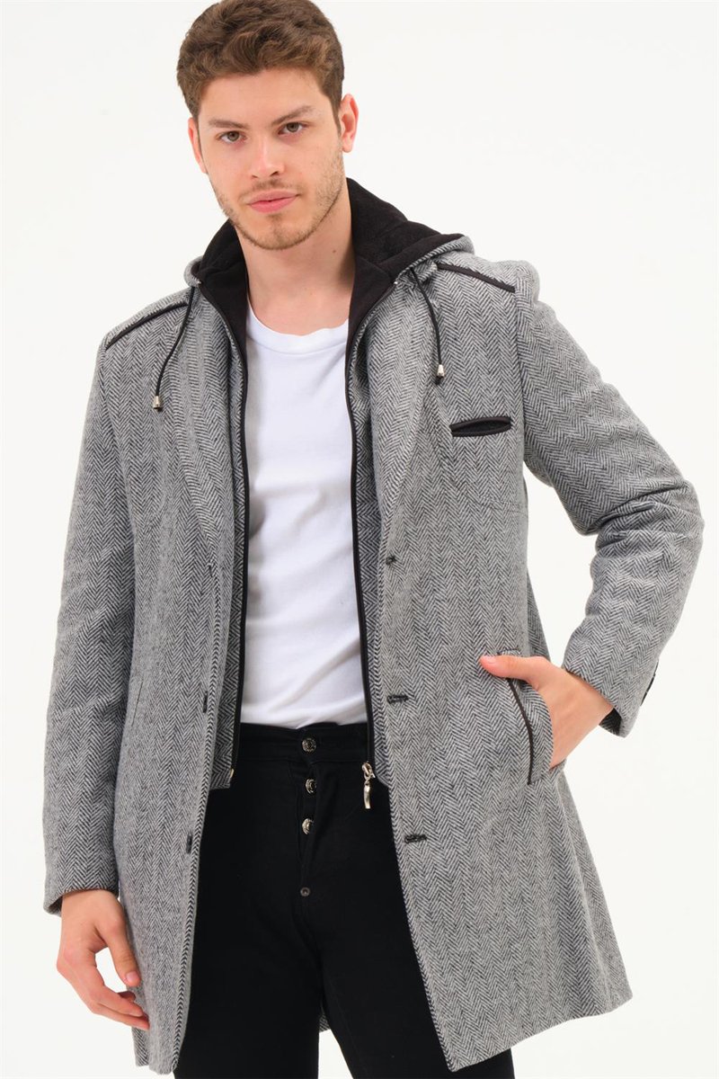Manteau à capuche en laine - Gris