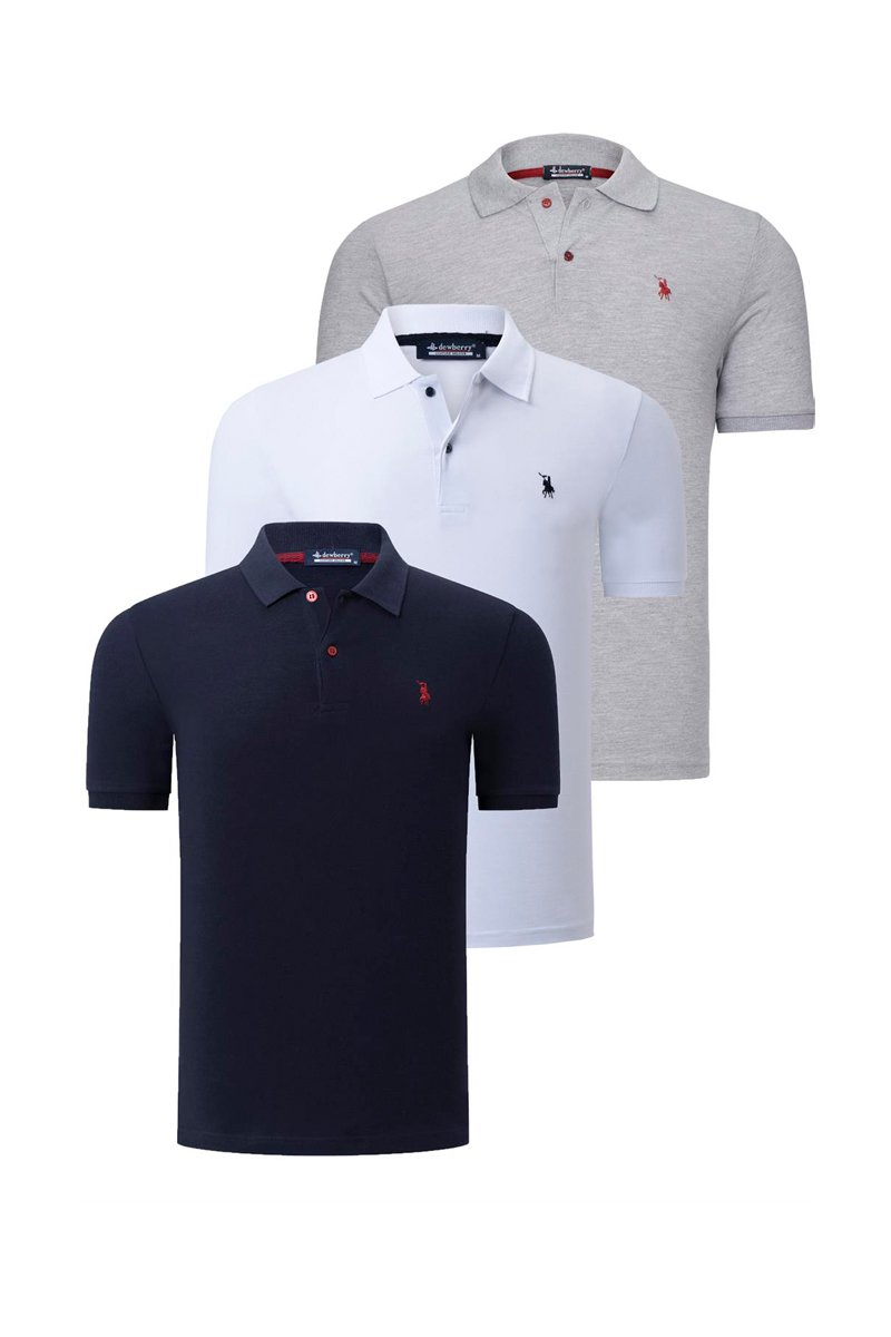 3 polos - Blanc, bleu et gris