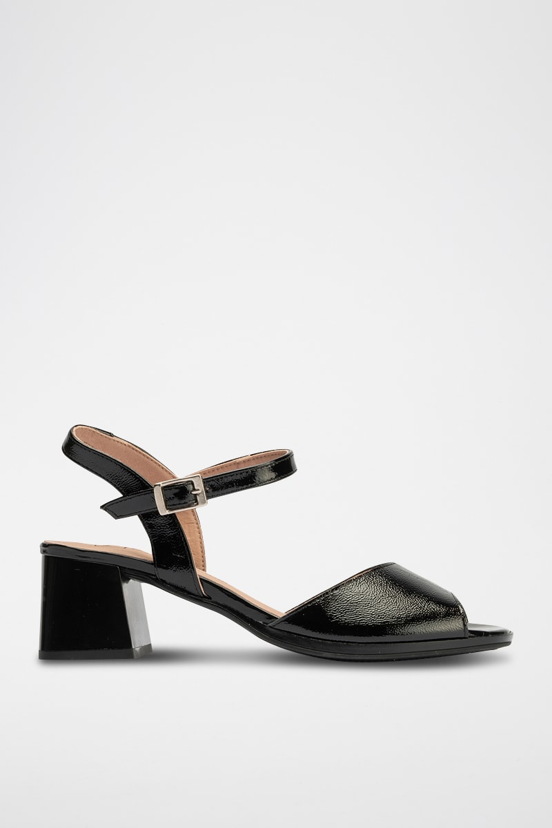 Sandales à talons en cuir verni - Noir