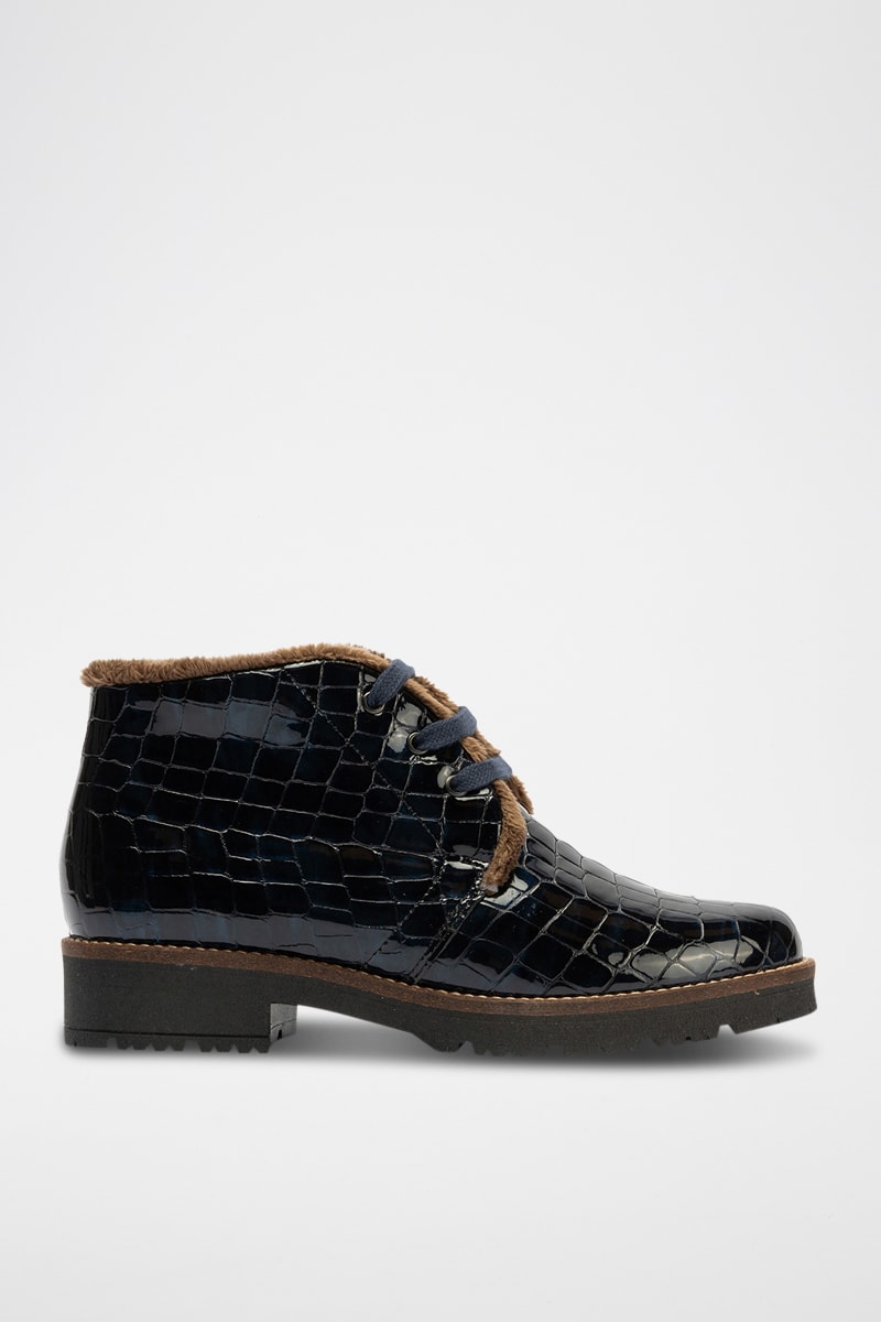Bottines fourrées en cuir verni - Bleu marine