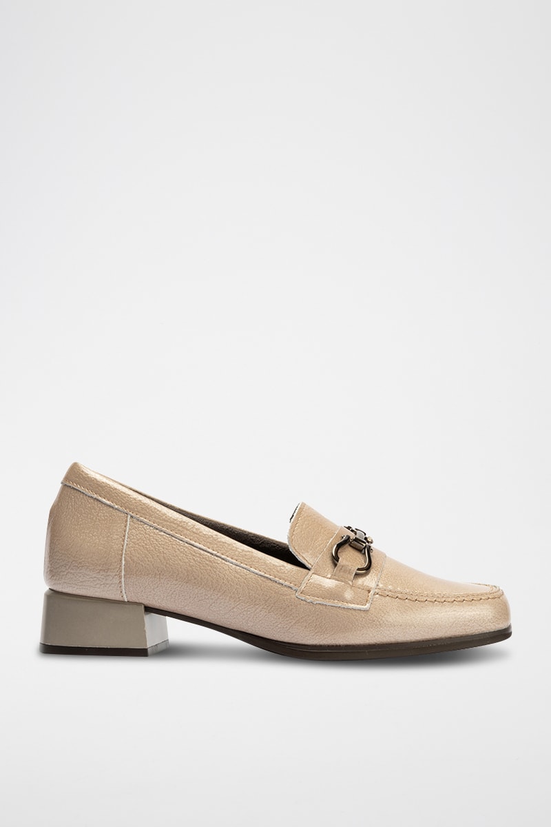 Mocassins à talons en cuir verni - Beige