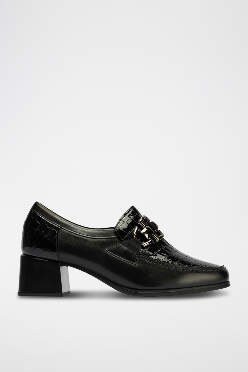 Mocassins à talons en cuir - Noir