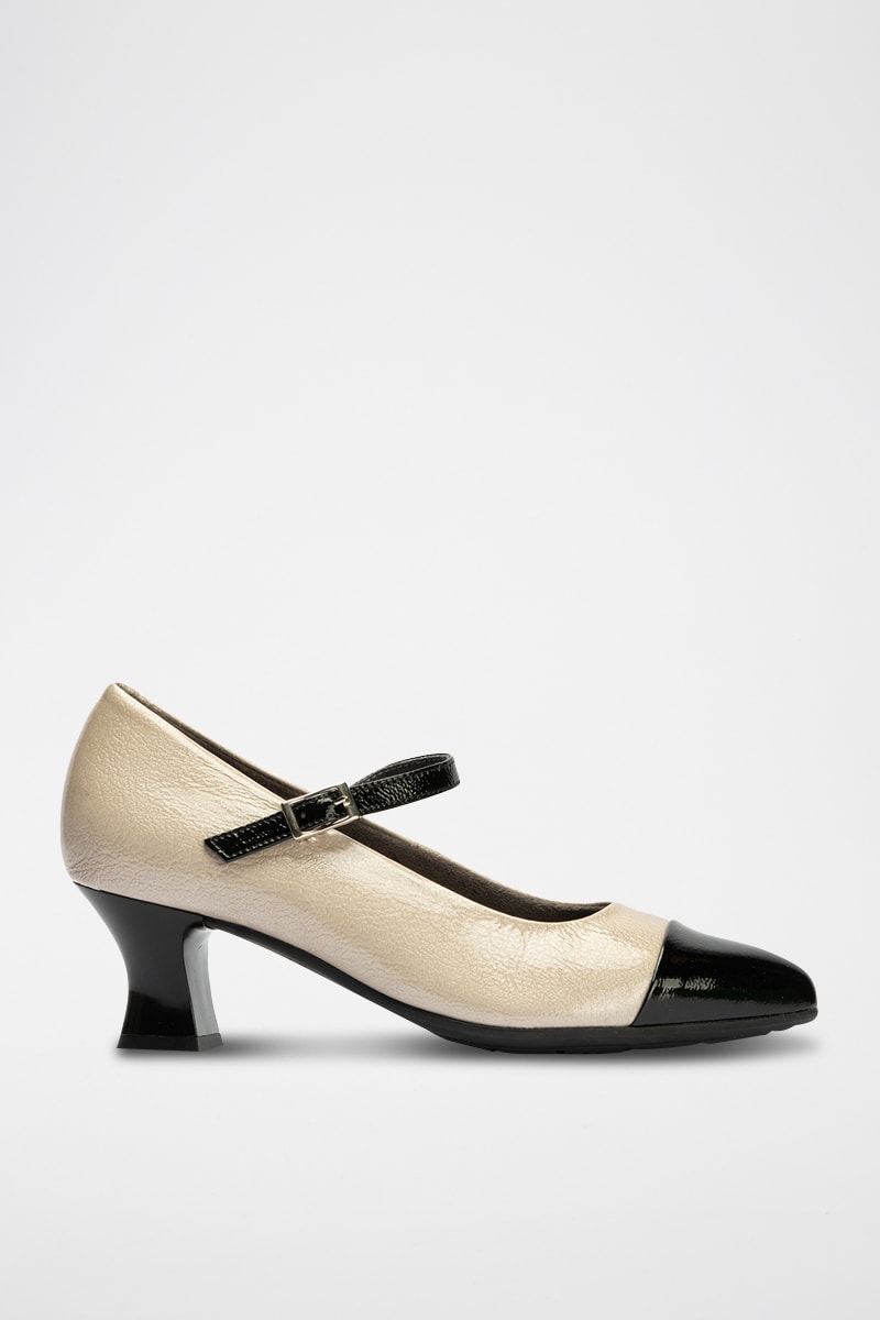 Babies à talons en cuir - Noir et beige