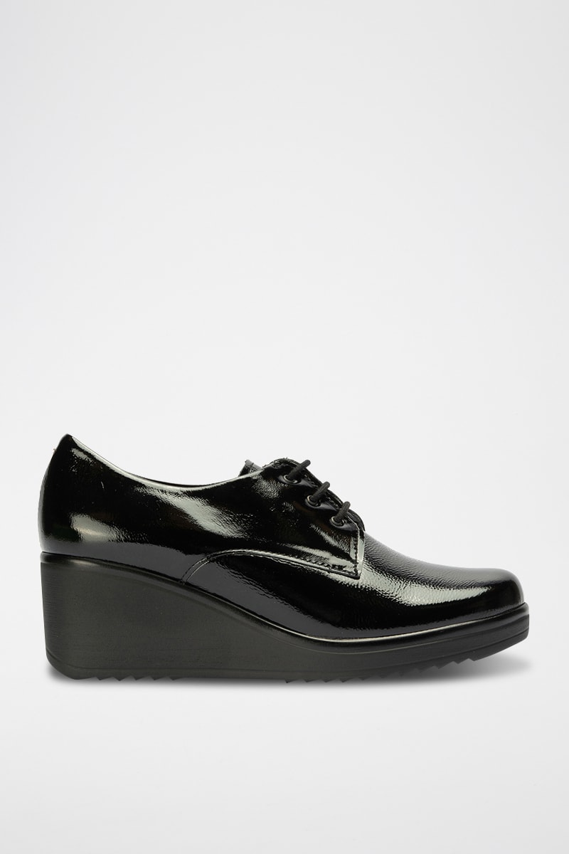 Derbys compensés en cuir verni.