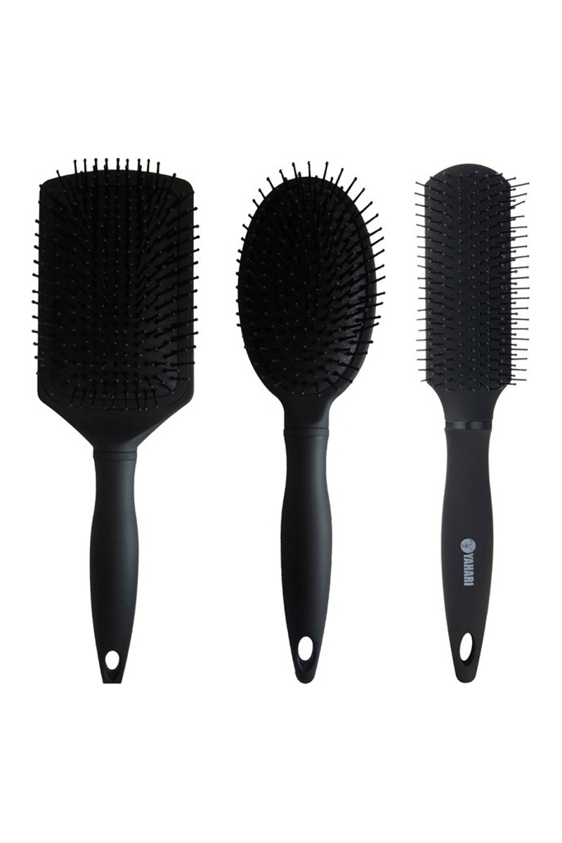 3 brosses (1 brosse ovale, 1 brosse pneumatique en carbone de bambou et 1 brosse plate).