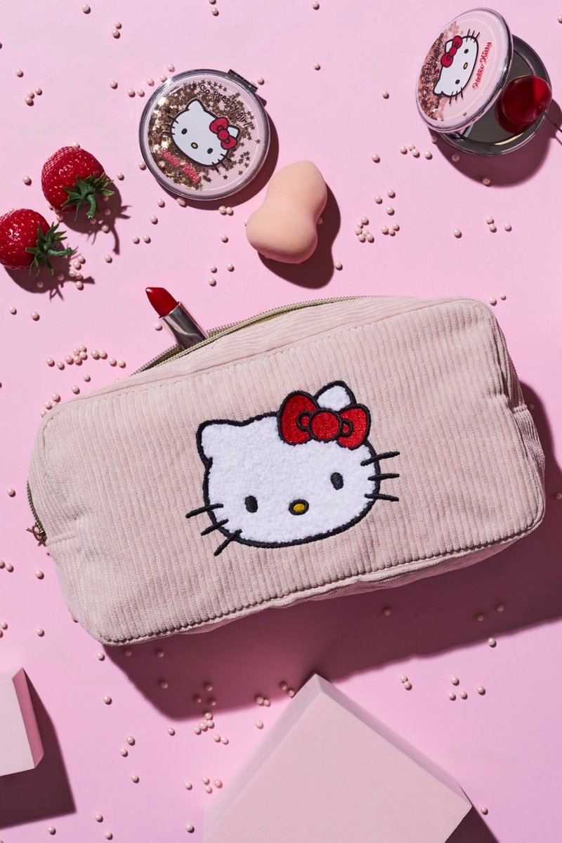 Trousse de toilette en velours Hello Kitty Sanrio.