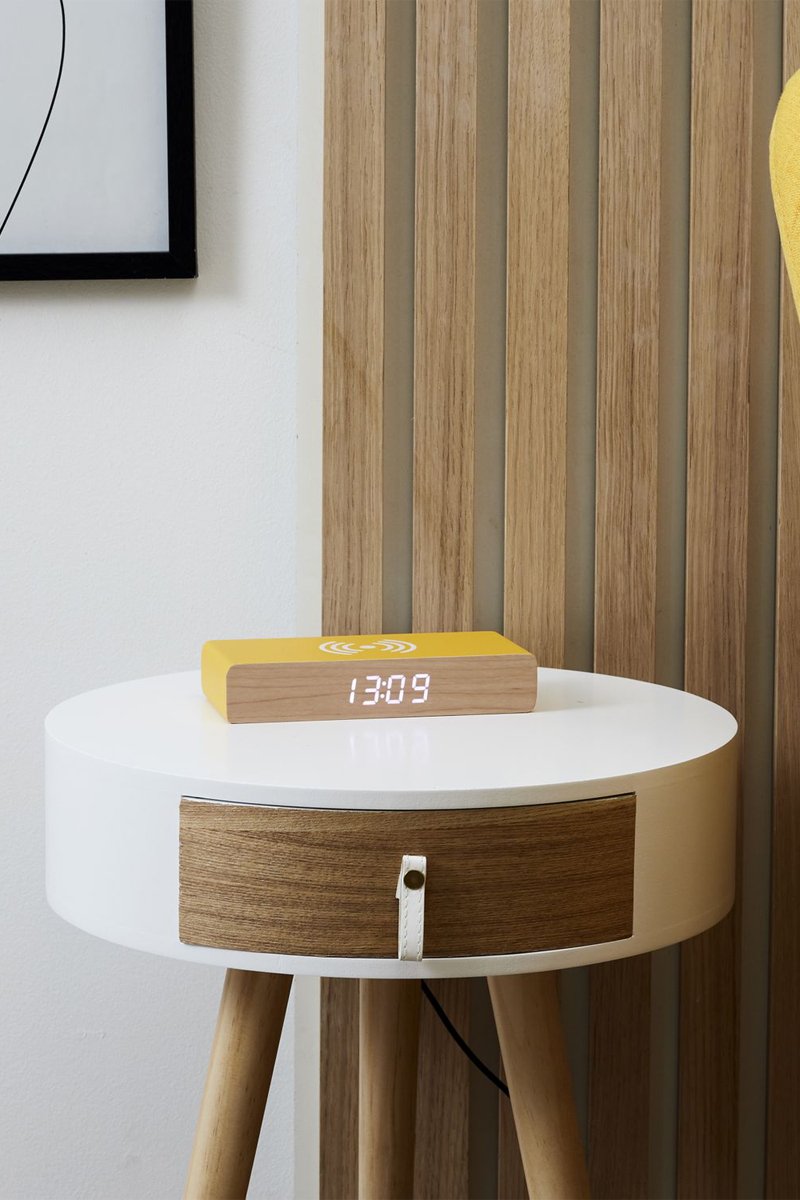 Vous, vous êtes à la page avec ce réveil chargeur bois jaune.