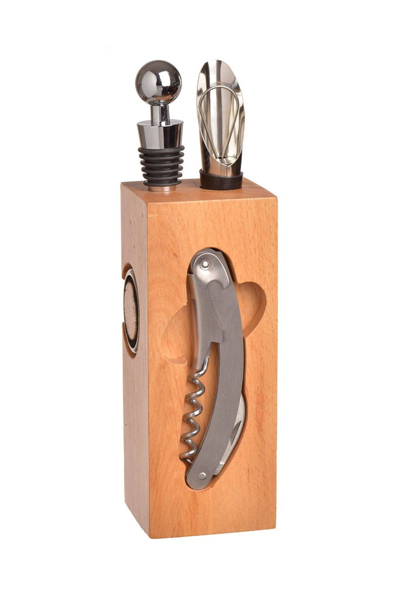 Bloc du sommelier en pin et acier inoxydable - 6 pièces