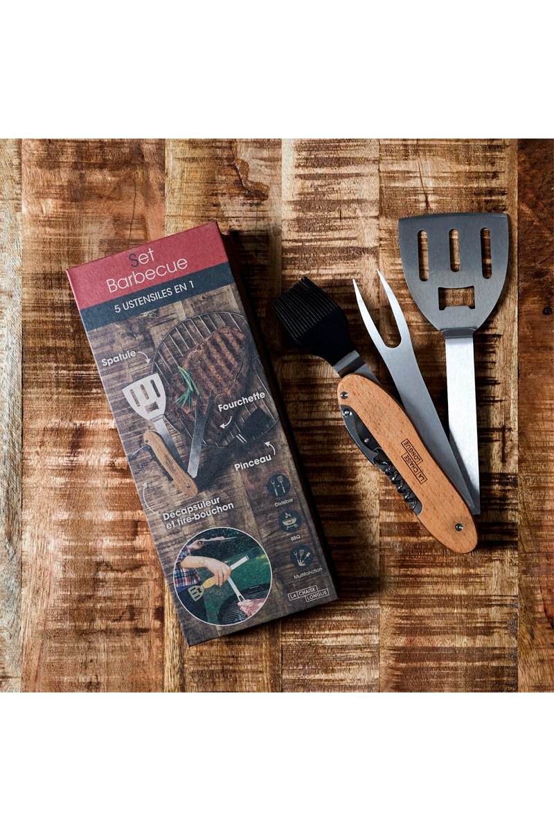 Accessoires barbecue 5 en 1 en acier inoxydable comprenant :