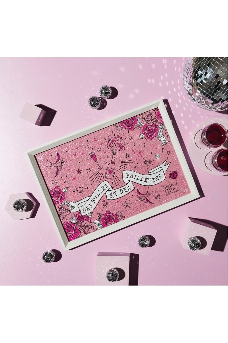 500 accessoires tels que : bulles, paillettes et cadre en bois.