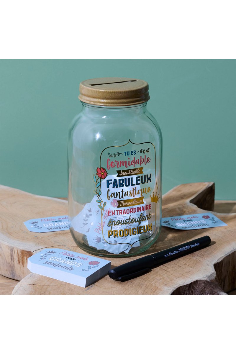 Le Bocal à Messages Famille est une manière charmante et interactive de communiquer et de partager des pensées avec vos proches.