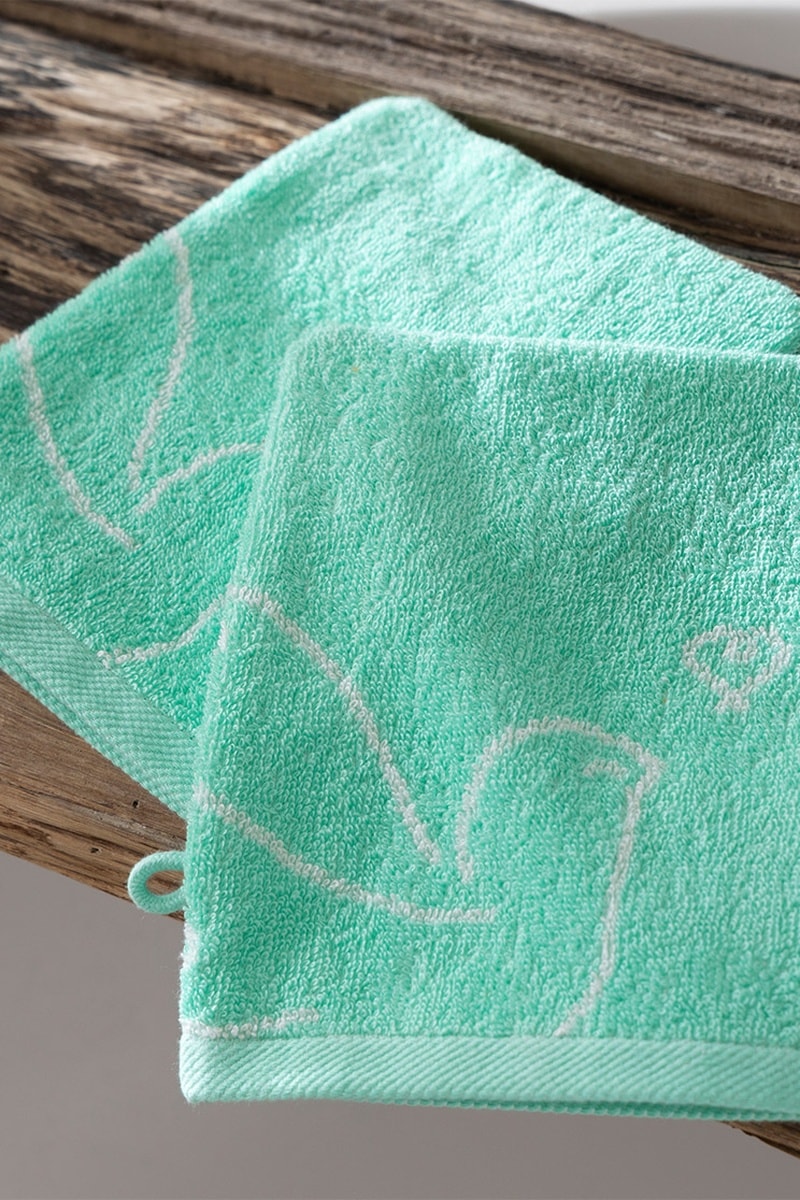 2 gants de toilette Amour de Colombes - Vert