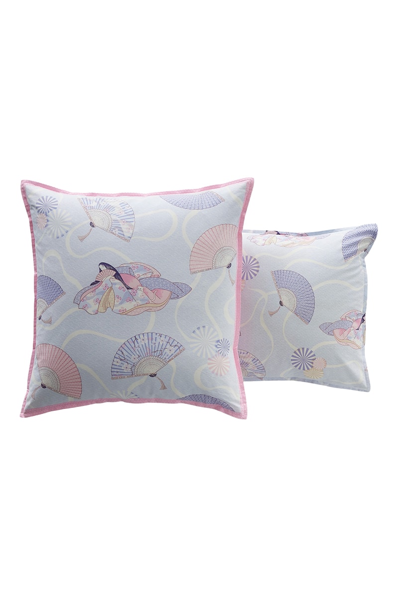 Taie d'oreiller en coton Princesse aux éventails - 57 fils/cm² - Ciel