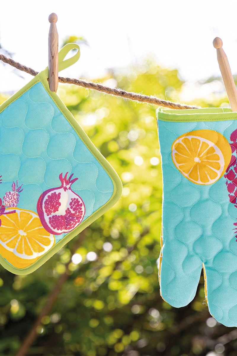Gant de cuisine et manique Les jardins de Balata - Bleu