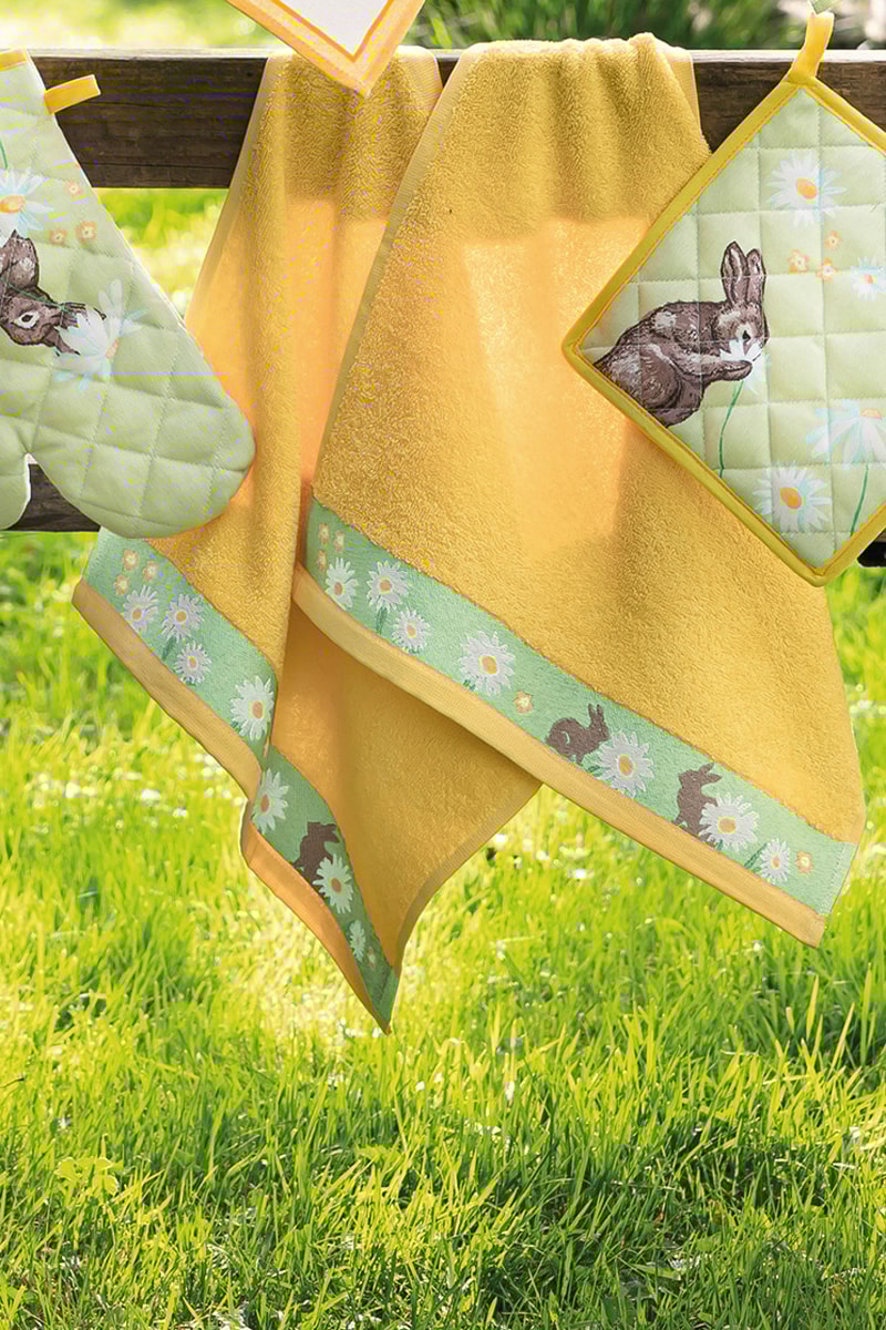 2 serviettes invité Au milieu des marguerites - Jaune - 40 x 40 cm