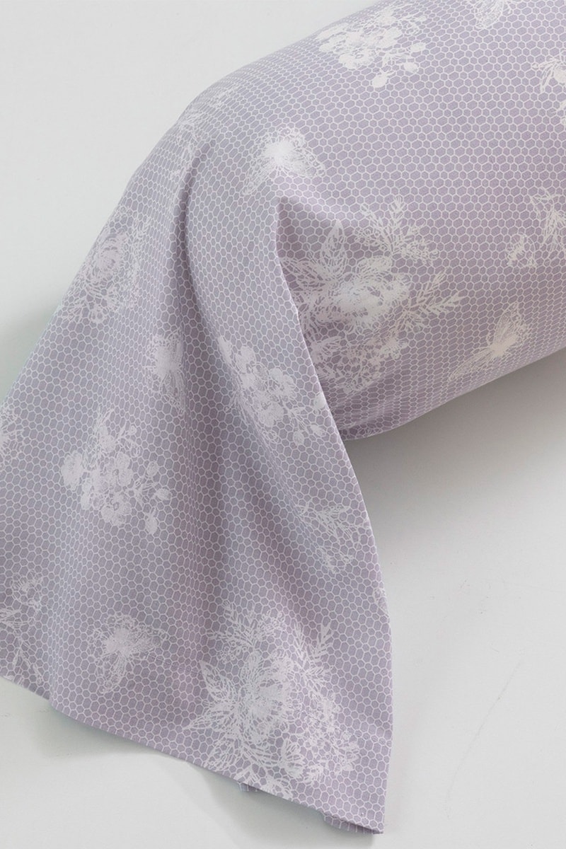 Taie de traversin en coton Jardin Dentelle - 57 fils/cm² - Lilas - 86 x 185 cm