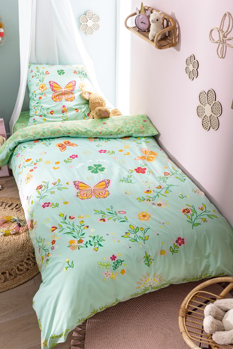 Housse de couette réversible en coton Mon Vœu Enchanté - 52 fils/cm² - Vert d'eau