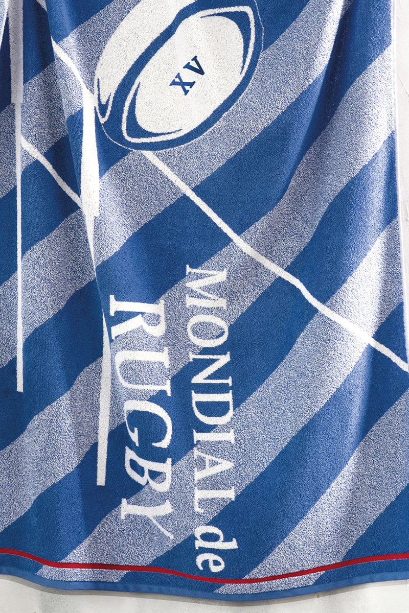 Motif ballon de rugby et lignes graphiques.