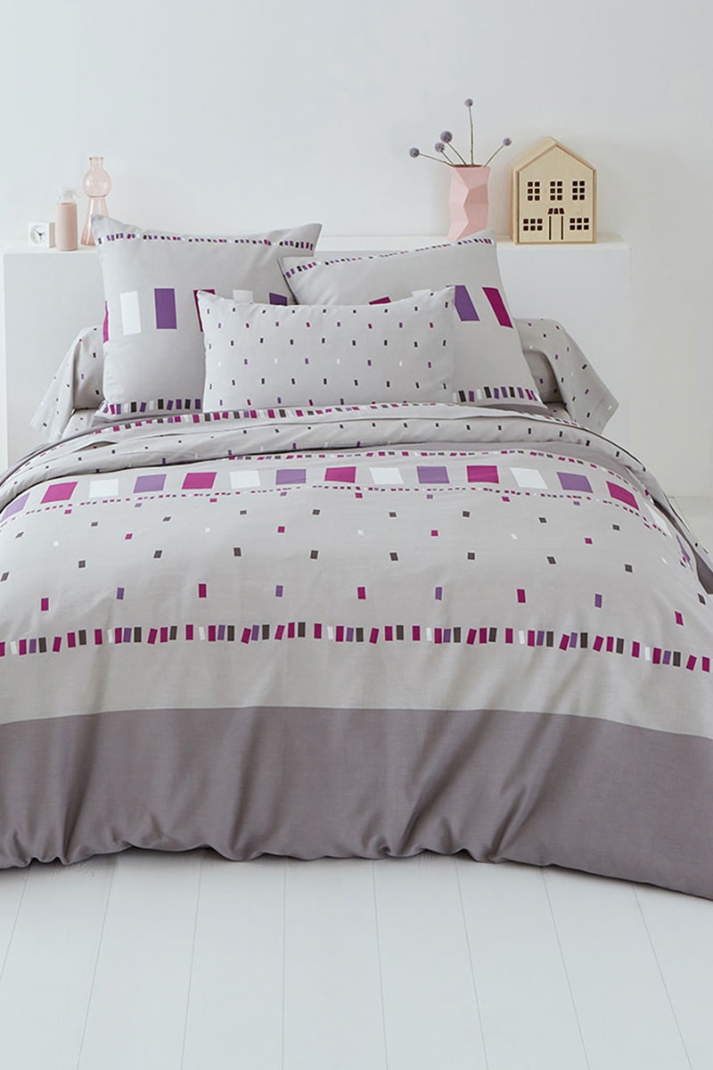 Housse de couette réversible en coton Ardoise Améthyste - 52 fils/cm² - Multicolore