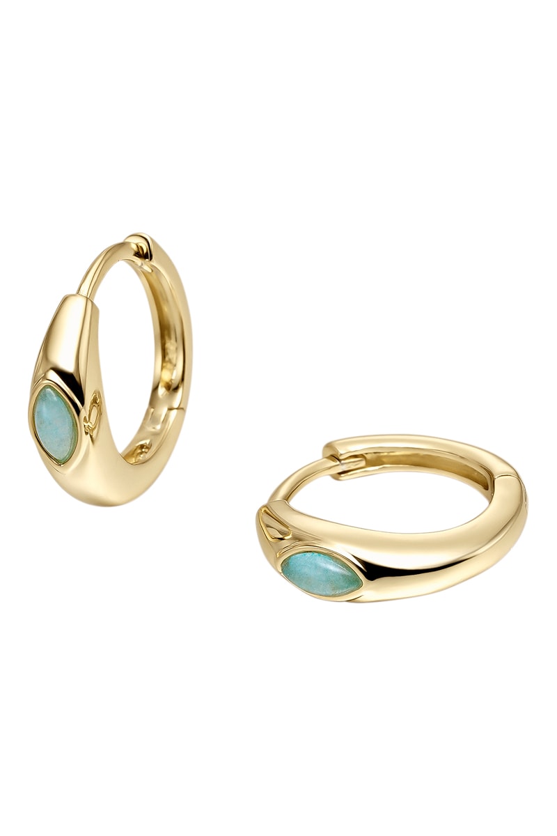 Créoles en argent plaqué or jaune serties d’une amazonite.