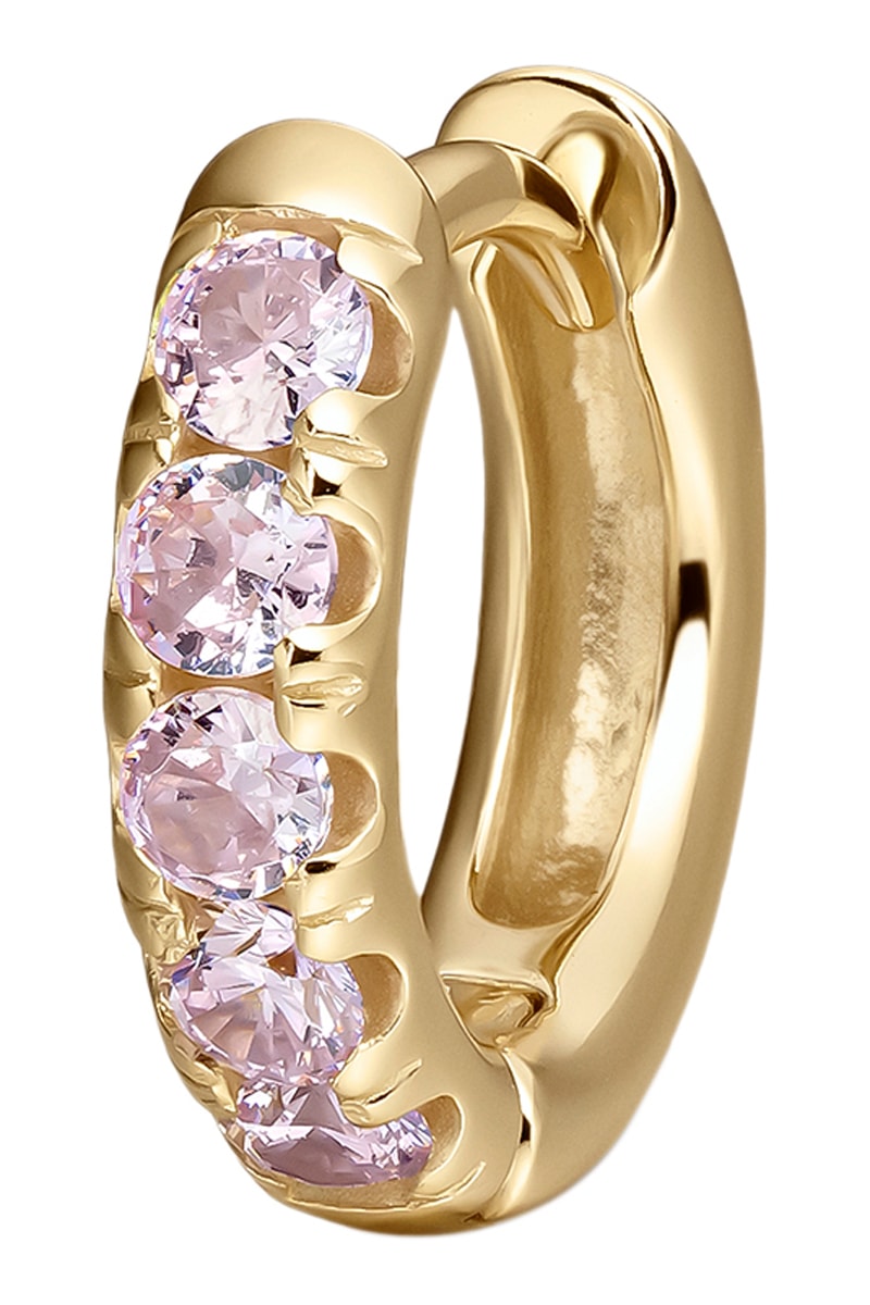 Créole en argent plaqué or jaune sertie de 5 zircones cubiques.