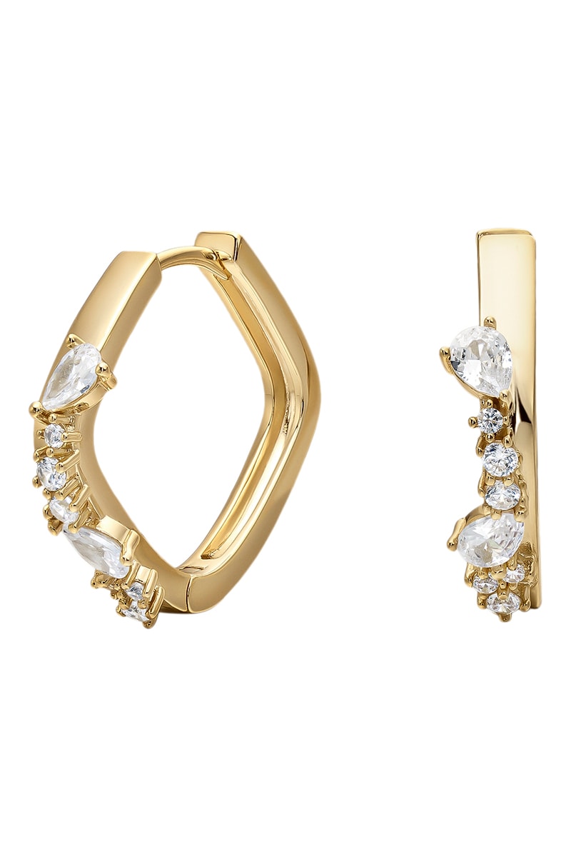 Créoles en plaqué or jaune serties de 8 zircones cubiques.