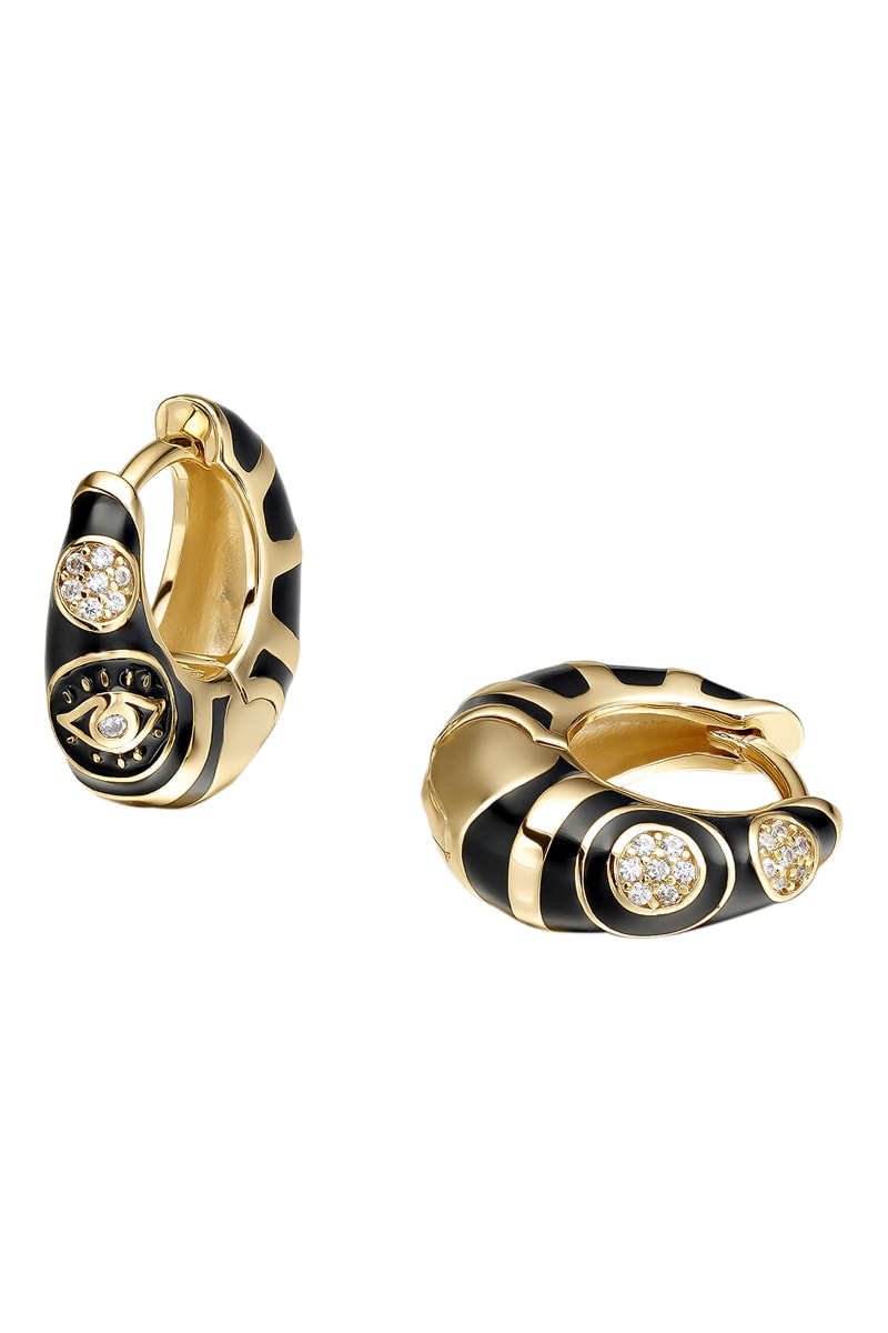 Créoles en plaqué or jaune serties de zircones et d'émail.